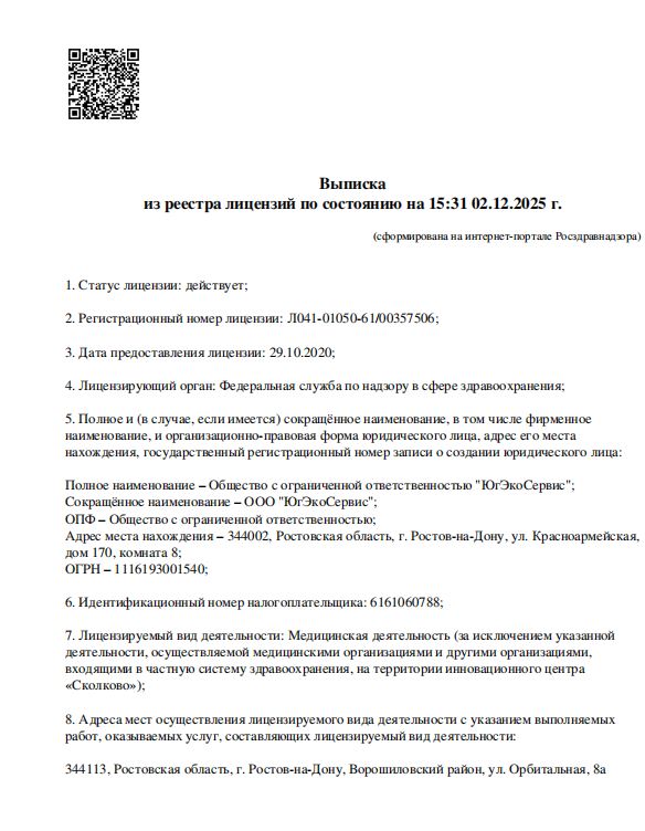 Все услуги оказываются анонимно и круглосуточно, а цены доступны благодаря действующим скидкам. Консультации медиков предоставляются бесплатно в клинике и по телефону, на них можно узнать: